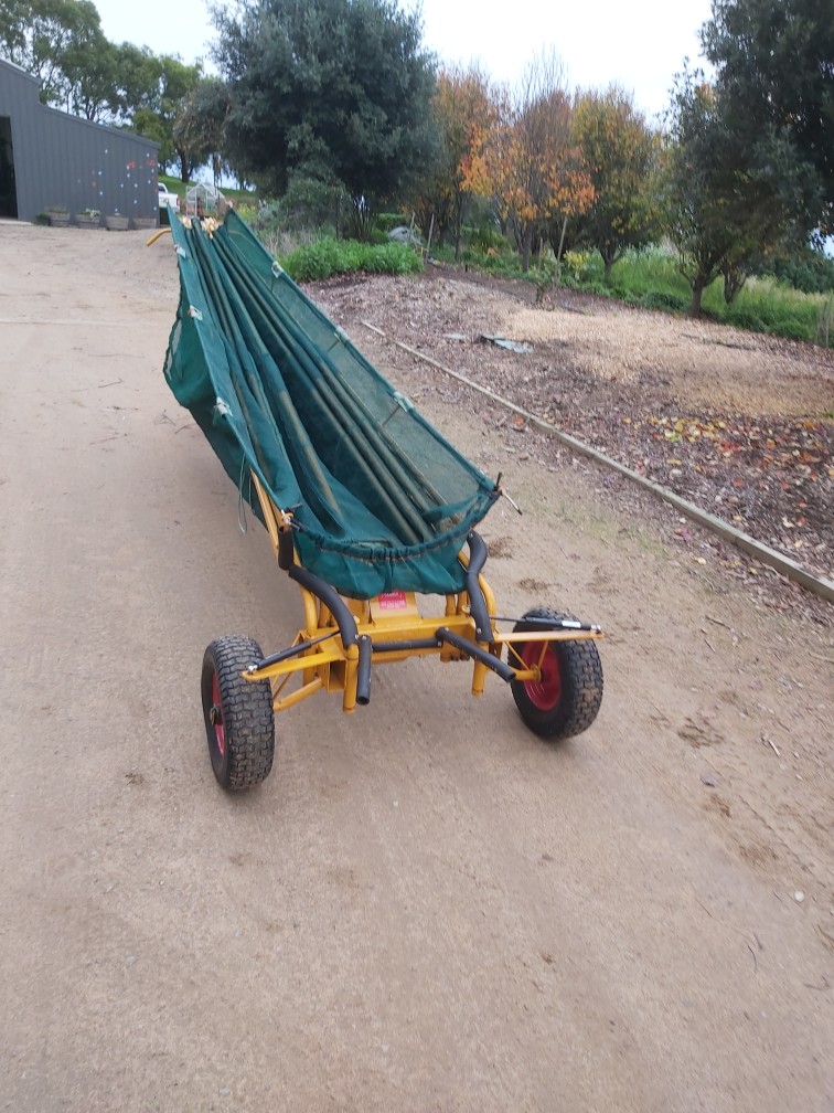 6.5 m diameter with towing arm. Fit basket beneath the net to catch olives.